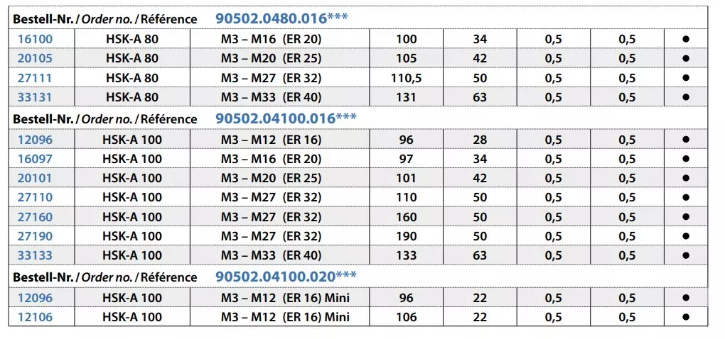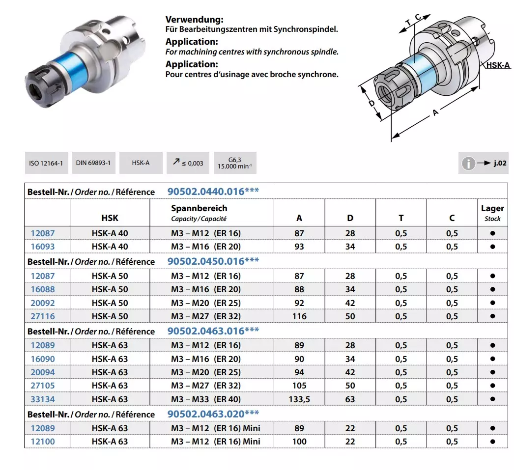 - ISO 12164-1 / DIN 69893-1 / HSK-A / Rundlaufgenauigkeit ≤ 0,003 / G6,3 15.000min