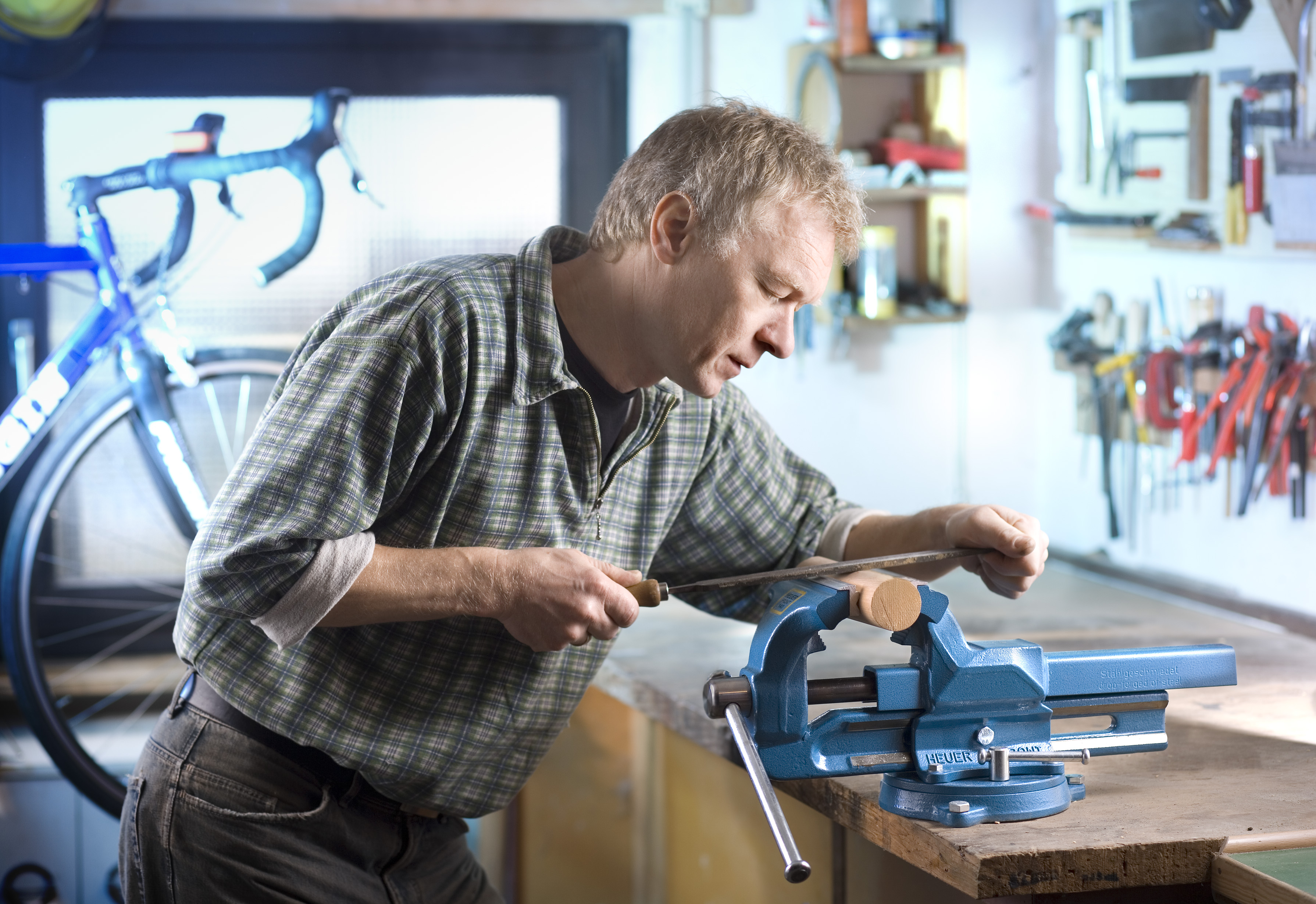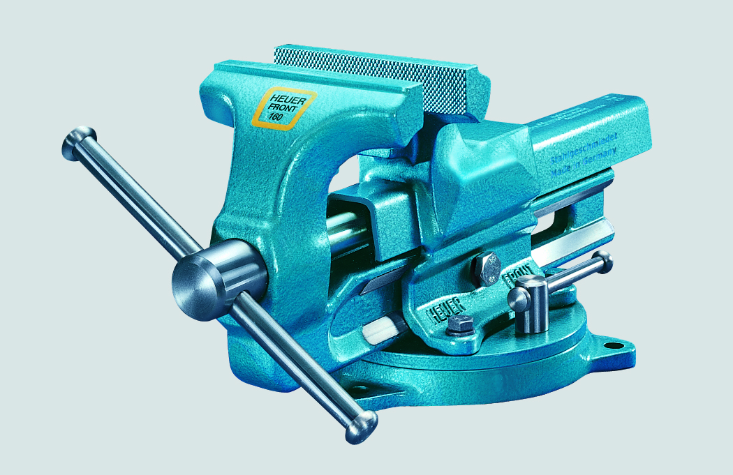 Dank dem HEUER Drehteller lässt sich der Schraubstock um 360° in einer Ebene frei drehen. Genau in die Position, die zur Bearbeitung des Werkstücks benötigt wird. Durch die robuste Arretierung mit kleinem Spindelschlüssel nach bewährtem HEUER-Prinzip lässt sich der Drehteller – und damit der Schraubstock – exakt an der gewünschten Position fest und sicher arretieren.