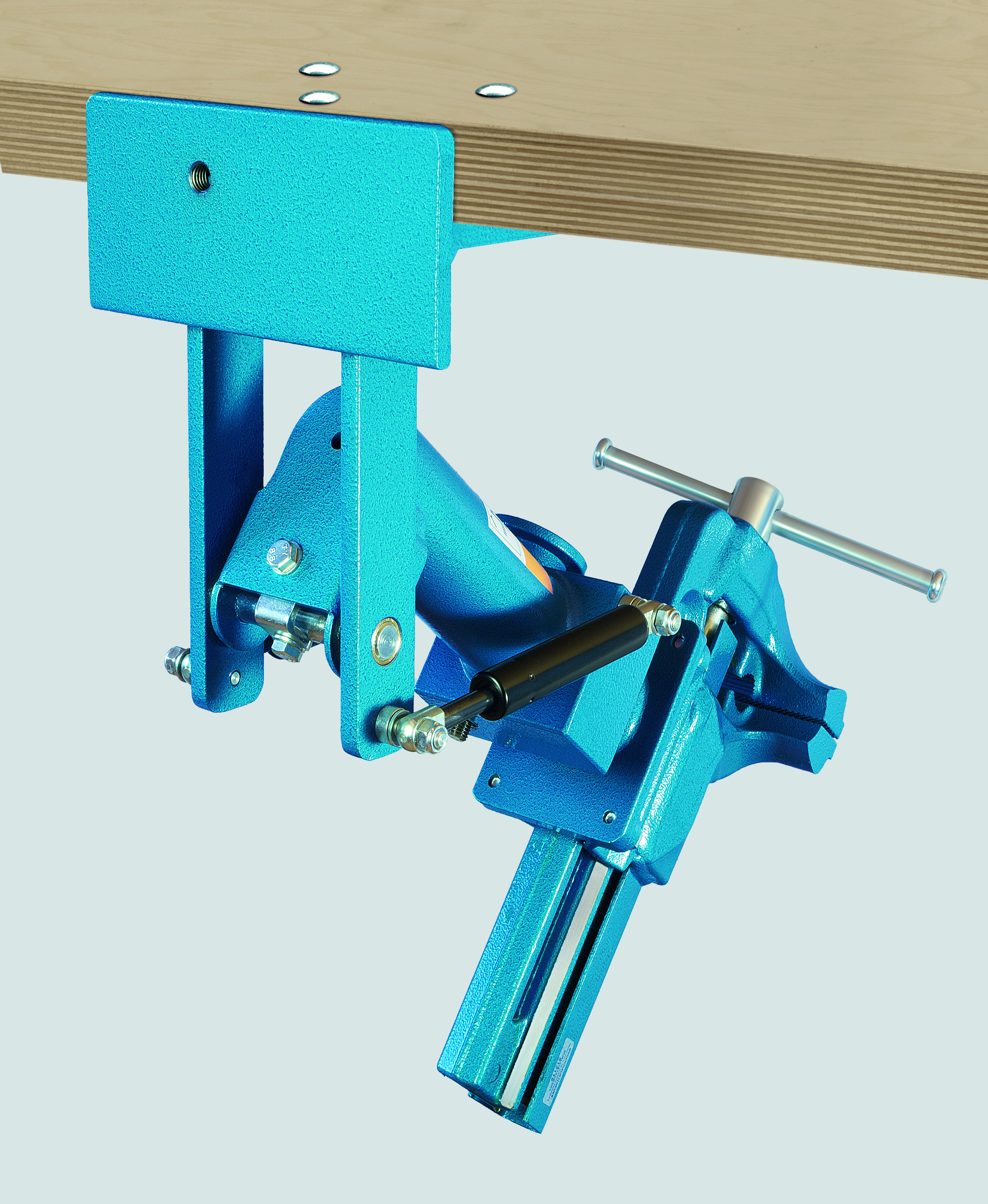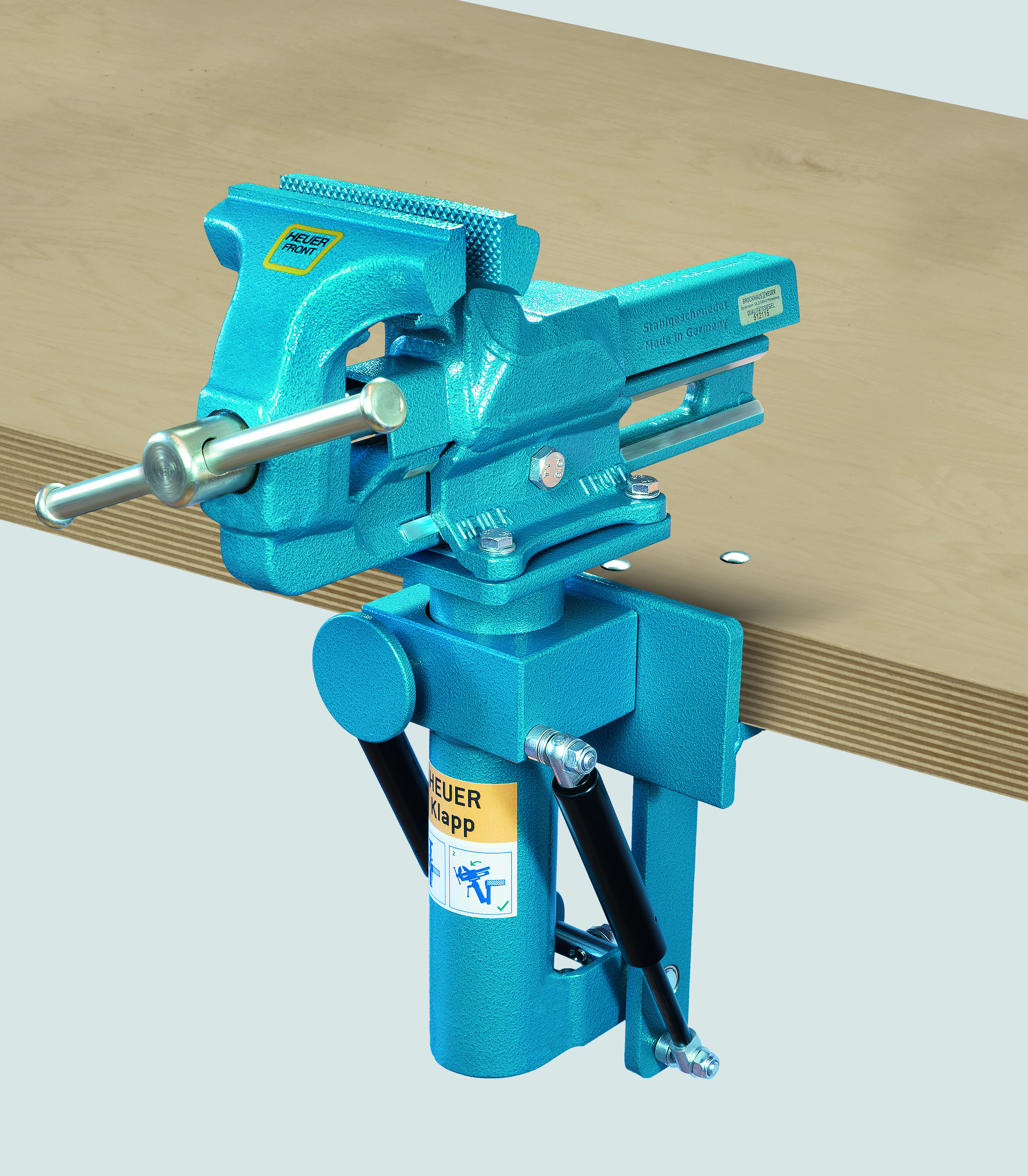 Die ideale Ergänzung zum Schraubstock. Im Handumdrehen kann der Schraubstock mit Hilfe des HEUER Klapp unter die Werkbank versenkt und so eine freie Arbeitsfläche geschaffen werden. Gerade in beengten Platzverhältnissen sorgt der HEUER Klapp so für optimale Ergonomie in der Werkstatt. In Arbeitsstellung ist der aufmontierte Schraubstock stabil und vibrationsfrei mit der Werkbank verbunden.