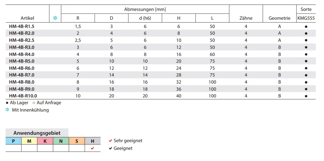 ZCC-CT VHM-Fräser-Kugelfräser HM-Serie HM-4B