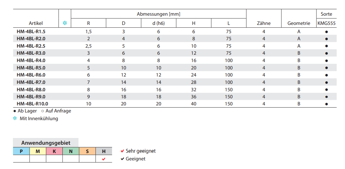 Produktinformationen "HM-4BL Kugelfräser "