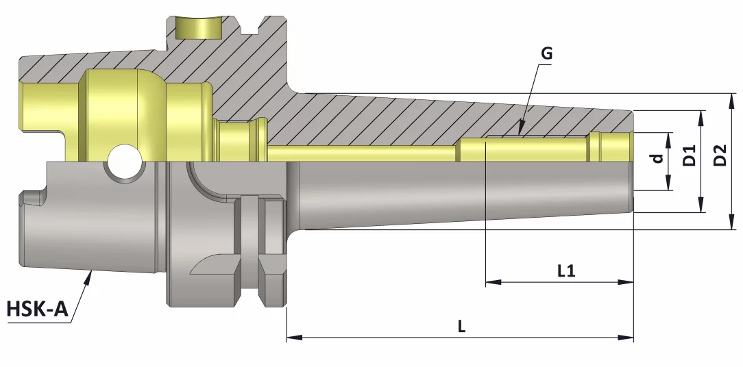 | Artikelbezeichnung | Artikelcode | HSK-A | d | D1 | D2 | G | L | L1 |