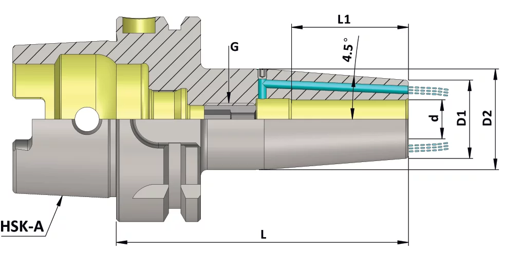 | Artikelbezeichnung | Artikelcode | HSK-A | d | D1 | D2 | G | L | L1 |