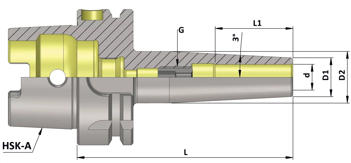 | Artikelbezeichnung | Artikelcode | HSK-A | d | D1 | D2 | G | L | L1 |