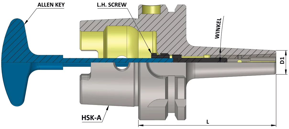 | Artikelbezeichnung | Artikelcode | HSK-A | D1 | L | Winkel | Schraube | Schlüssel |