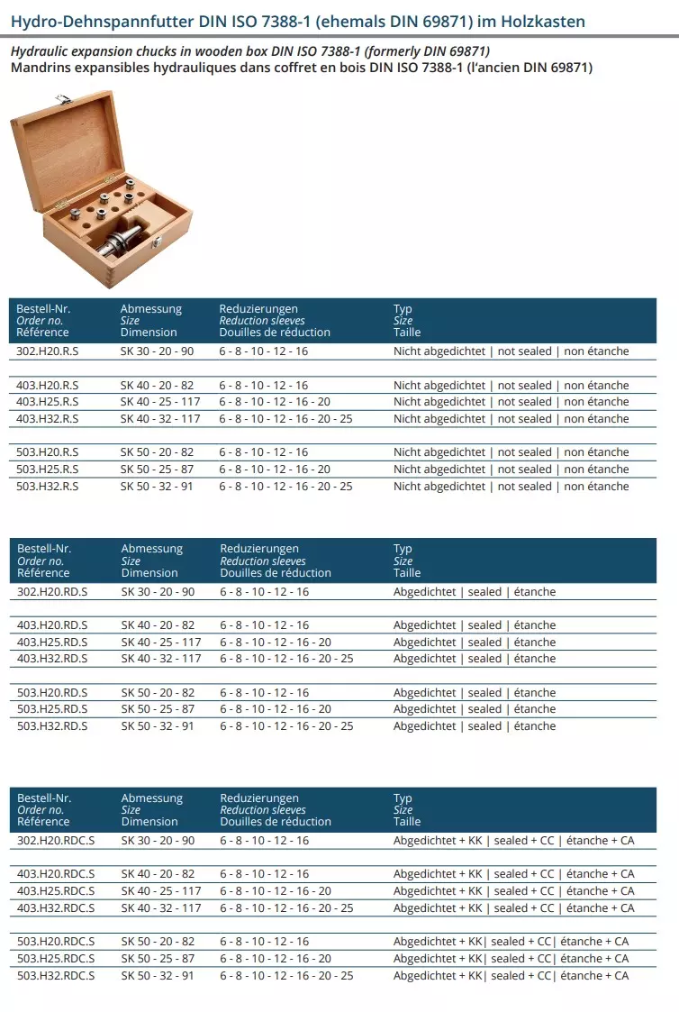 Produktinformationen "Hydro-Dehnspannfutter DIN ISO 7388-1 im Holzkasten"