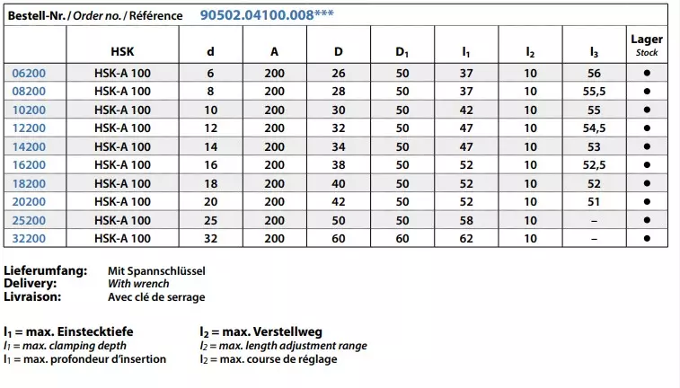 - Zur Aufnahme von Werkzeugen mit Zylinderschaft nach DIN 1835 Form A + B + E und DIN 6535 Form HA + HB + HE (größer Ø 20mm nur mit Reduzierung)