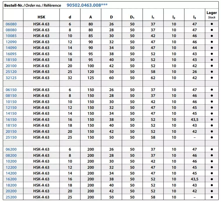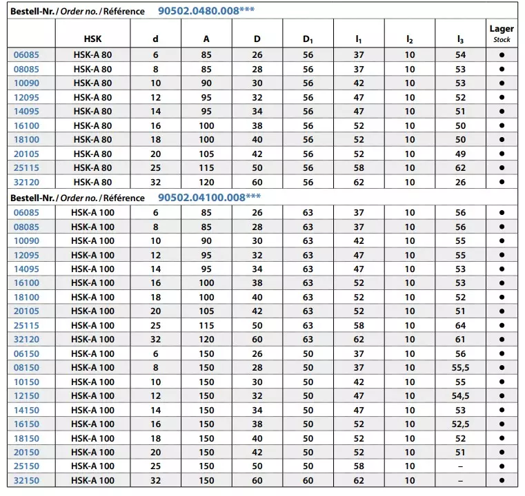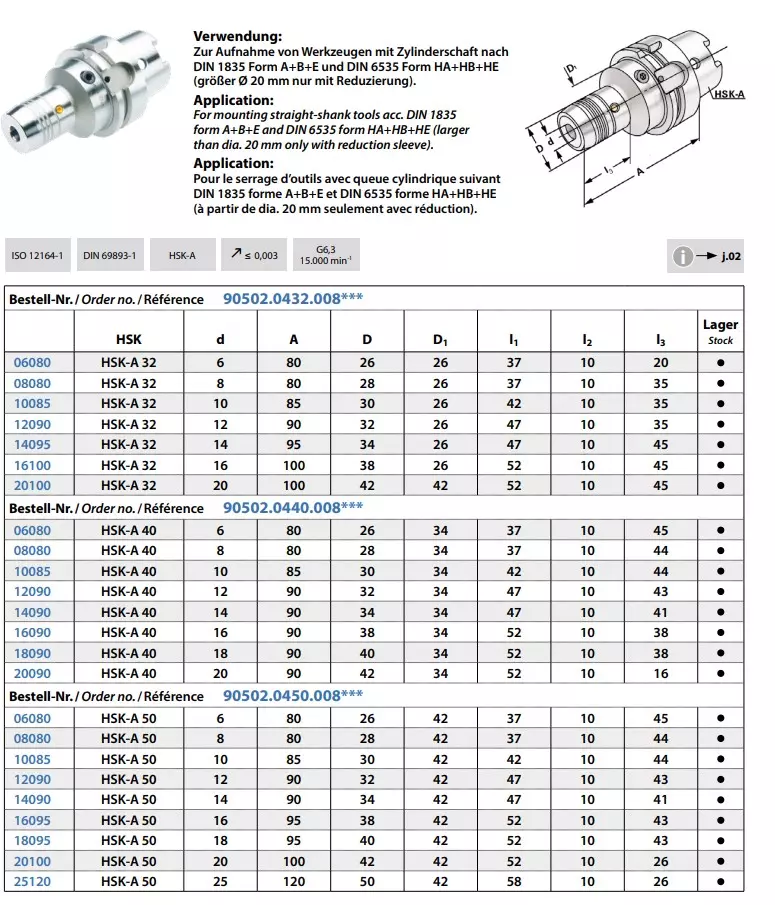 - ISO 12164-1 / DIN 69893-1 / HSK-A / Rundlaufgenauigkeit ≤ 0,003 / G6,3 15.000min