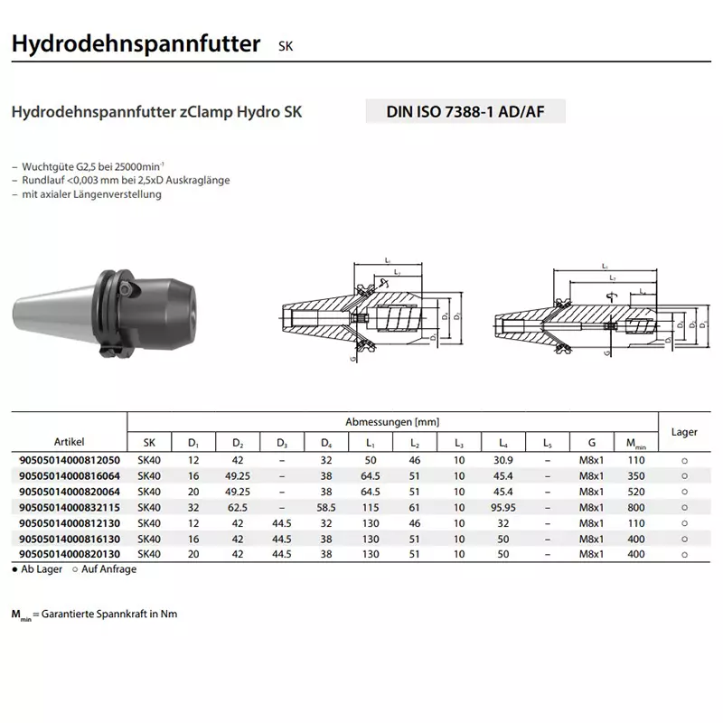 Produktinformationen " Hydrodehnspannfutter zClamp Hydro SK 40 DIN ISO 7388-1 AD/ AF "