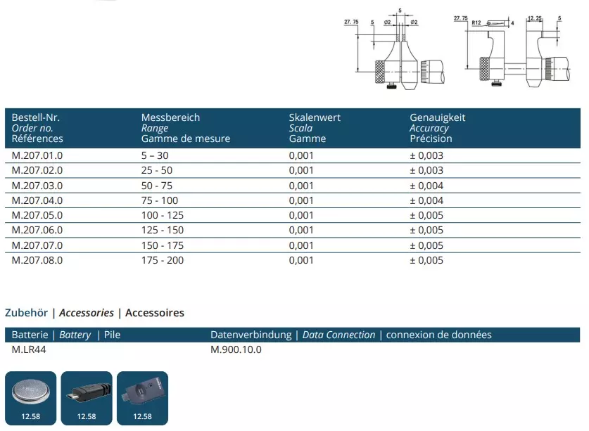 - 5-30 mm und 25-50 mm werden mit Einstellringen geliefert