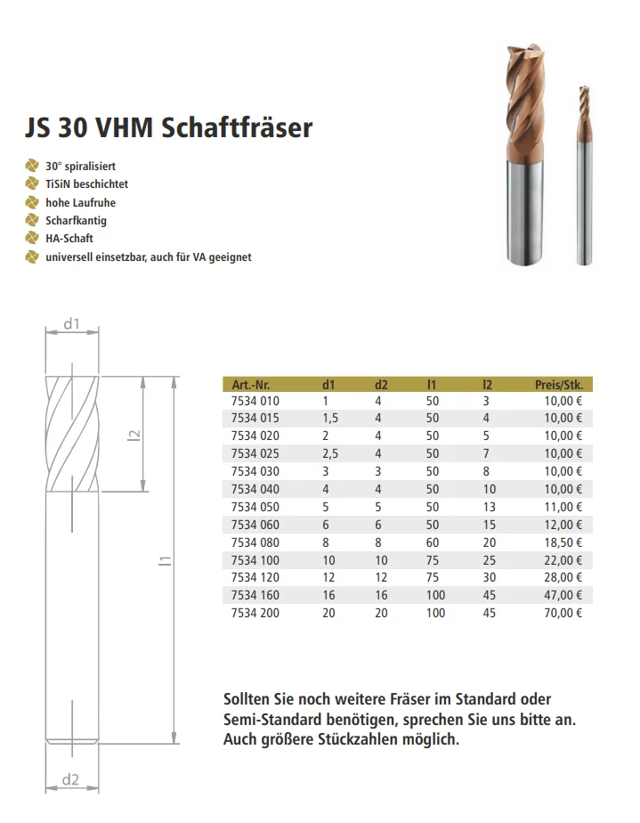 Entscheiden Sie sich jetzt für den JS 30 VHM Schaftfräser und erleben Sie eine neue Dimension der Metallbearbeitung – Made in Germany!