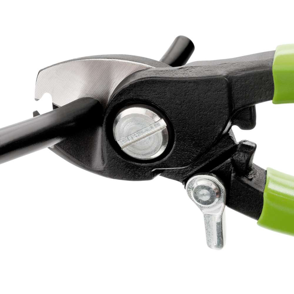 - Kabelschere mit spezieller Schneidengeometrie für einen leichten, sauberen Schnitt, mit Öffnungsfeder