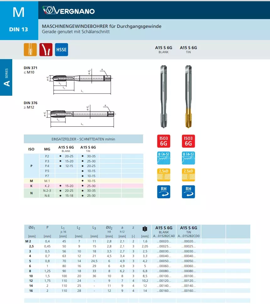 Produktinformationen "Maschinengewindebohrer HSSE A15 S 6G"