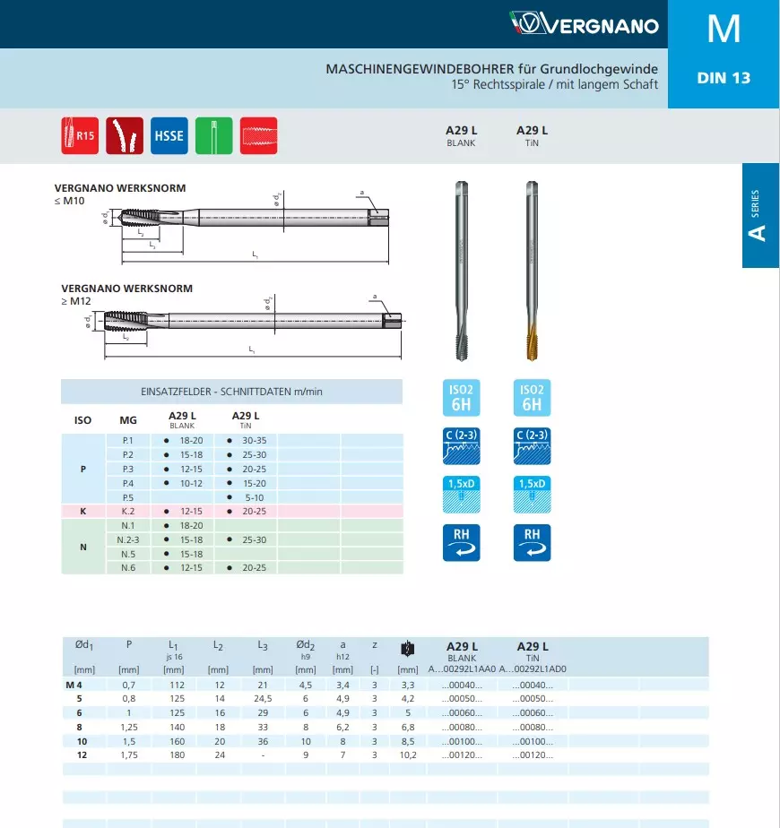 Produktinformationen "Maschinengewindebohrer HSSE -A29 L"