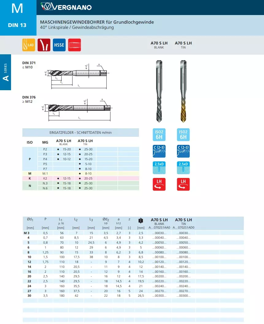 Produktinformationen "Maschinengewindebohrer HSSE A70 S LH"