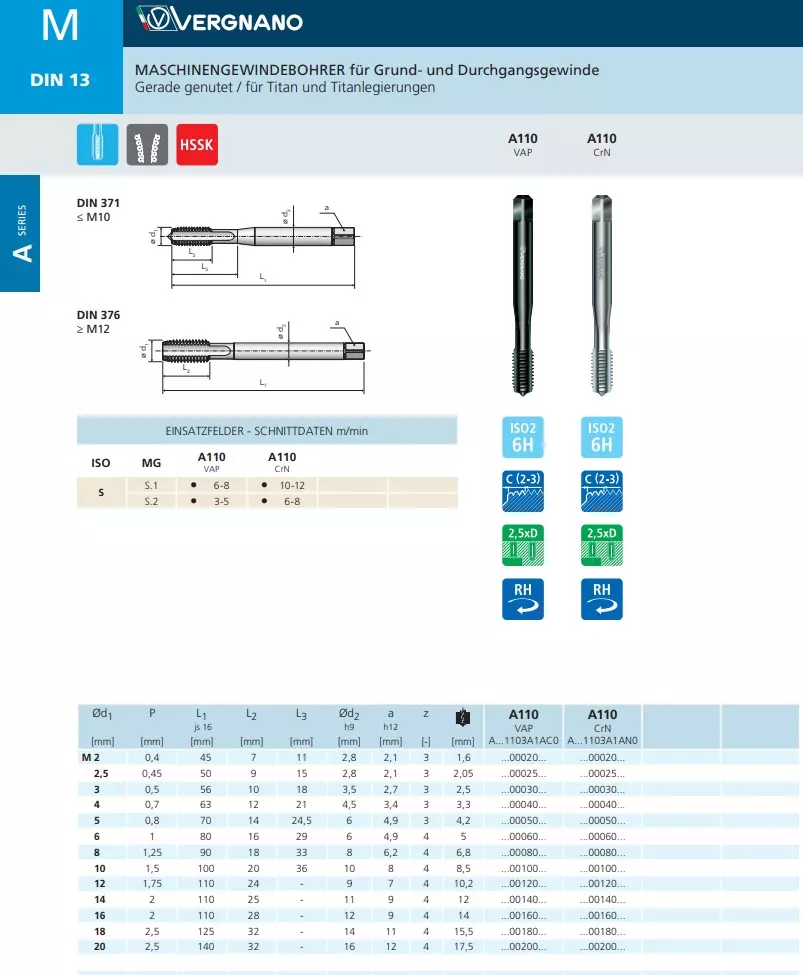 Produktinformationen "Maschinengewindebohrer HSSK A110"