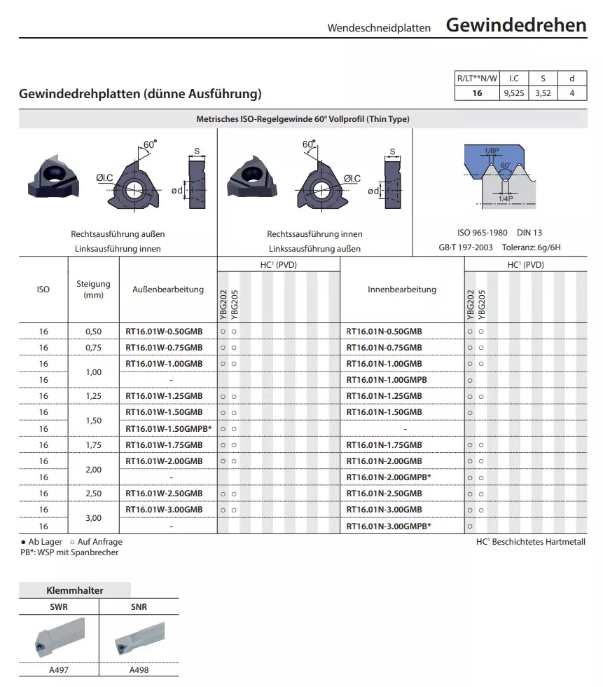 Metrisches ISO-Regelgewinde 60° Vollprofil (Thin Type)