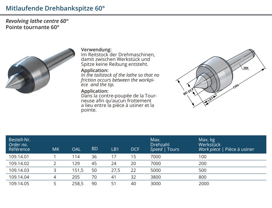 Produktinformationen "Mitlaufende Drehbankspitze 60°"