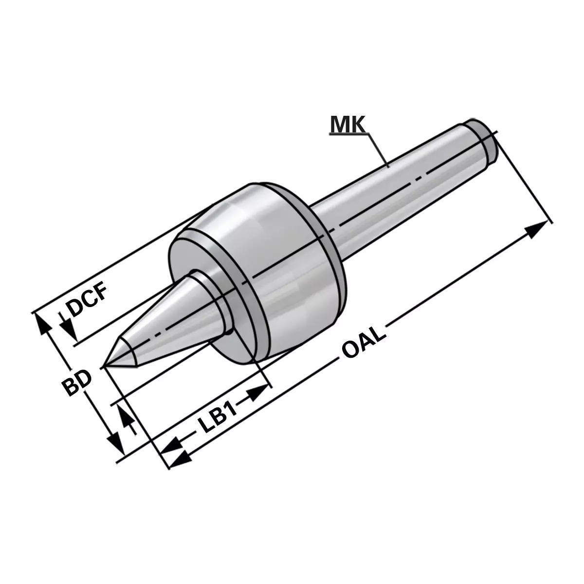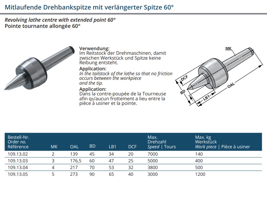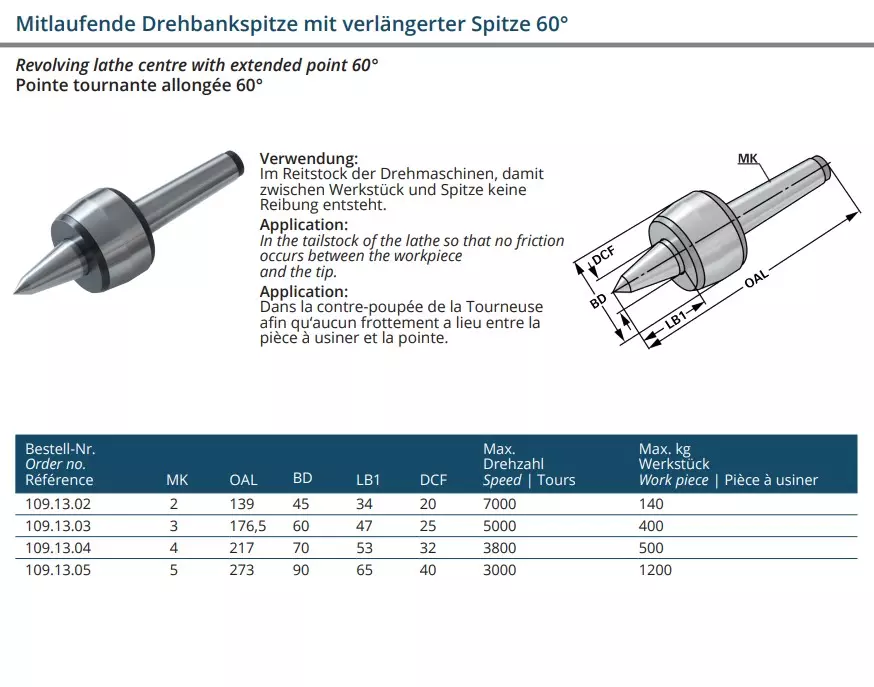 Produktinformationen "Mitlaufende Drehbankspitze mit verlängerter Spitze 60°"