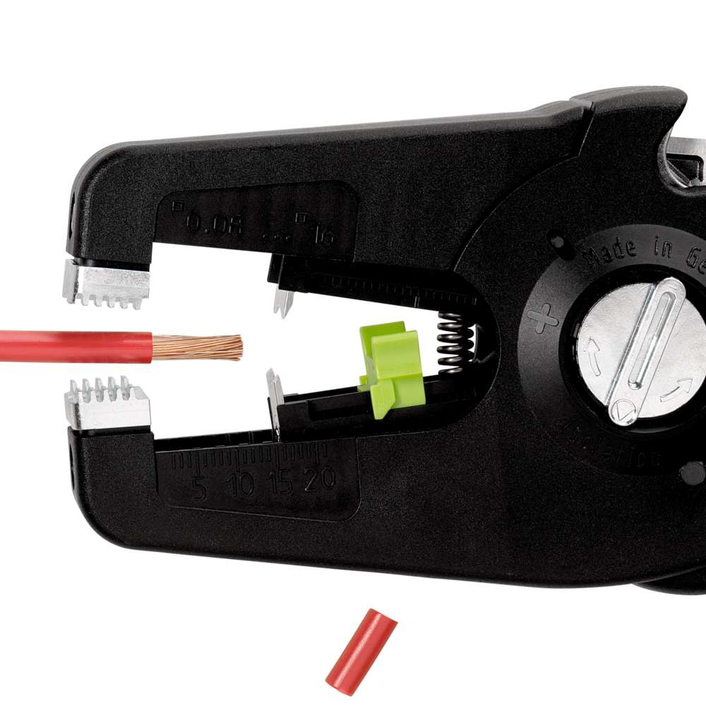 - selbsteinstellend auf Querschnitte im Bereich 0,08 mm² bis 16 mm² ohne Messerwechsel