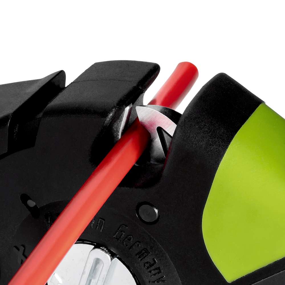 - multifunktional durch integrierten Kabelschneider, Kapazität mehrdrähtig bis 16 mm² und eindrähtig bis 6 mm²