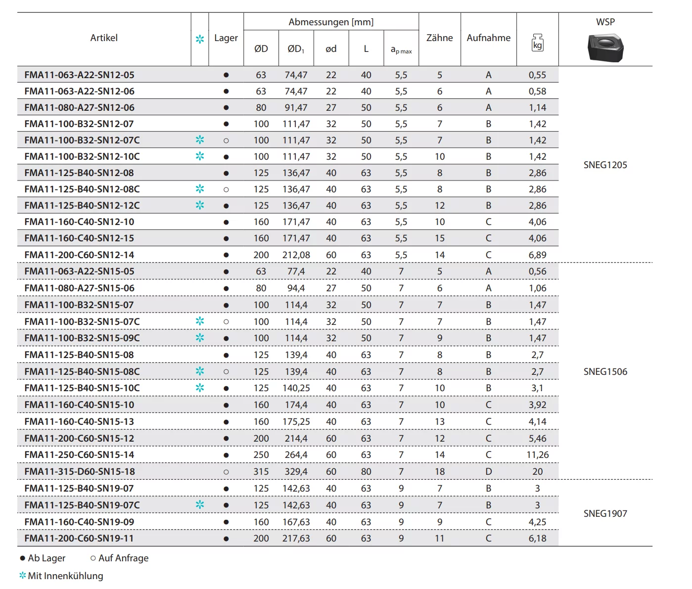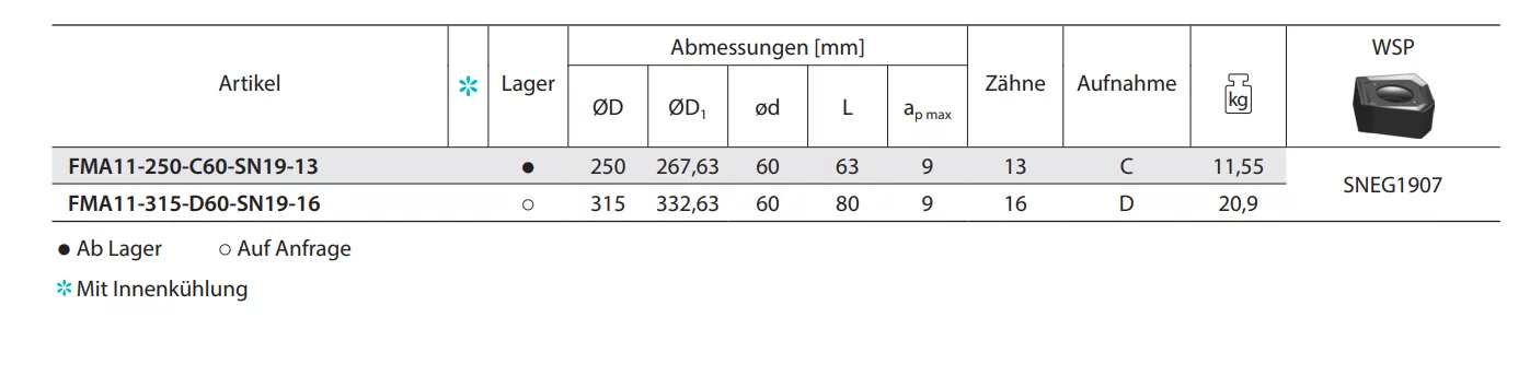 Produktinformationen "Planfräser FMA11 Kr: 45°"