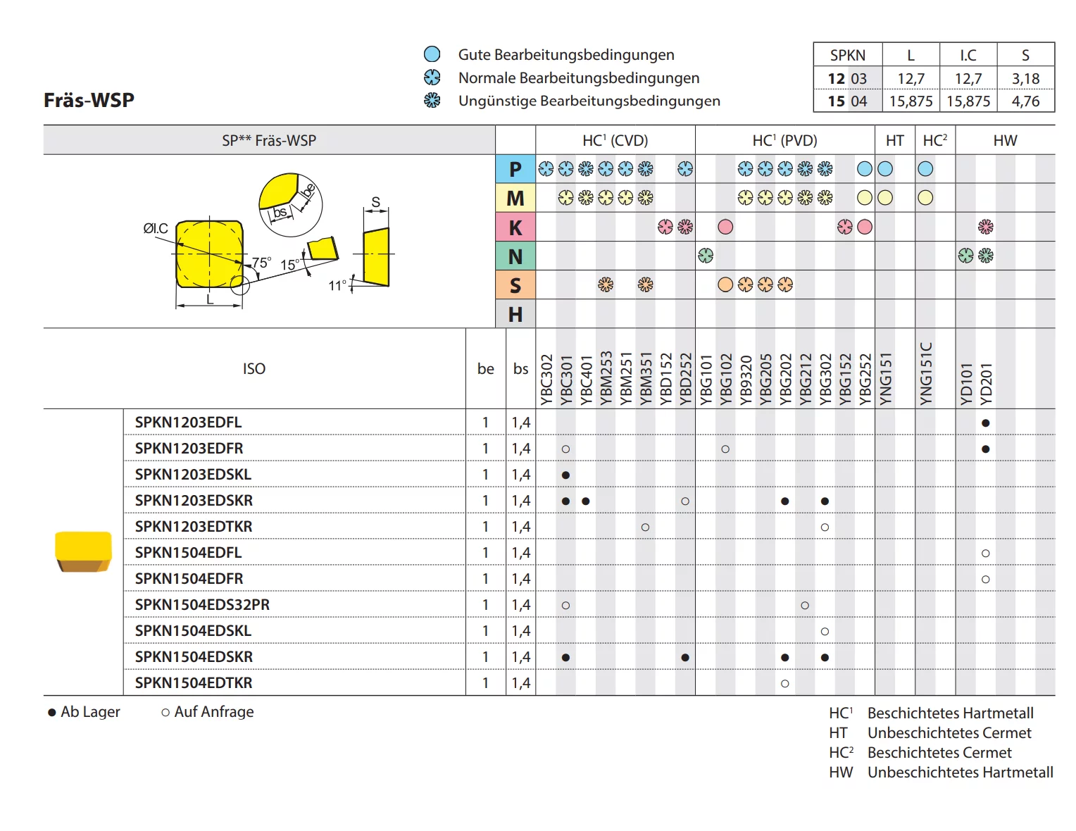 - Große Plattenauswahl mit 6 verschiedenen Spanbrechern.