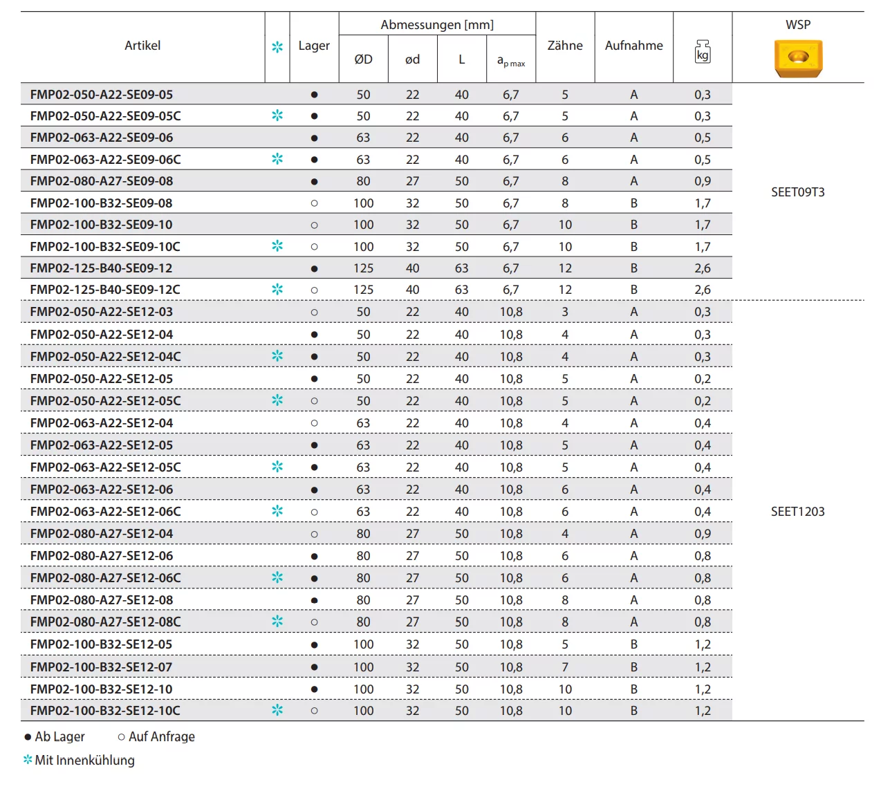 Produktinformationen "Planfräser FMP02 Kr: 90° "