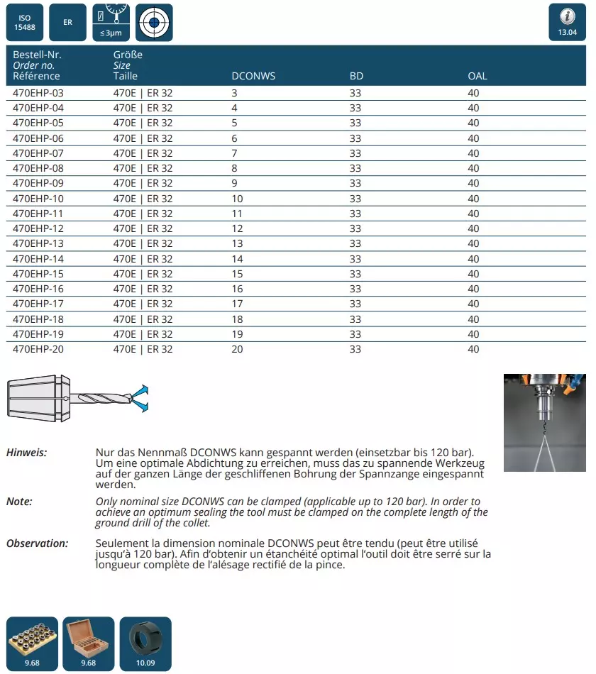 Produktinformationen "Präzisionsspannzangen abgedichtet für Hochdruckkühlung bis 120 bar ER System| Rundlauf < 3 µm"