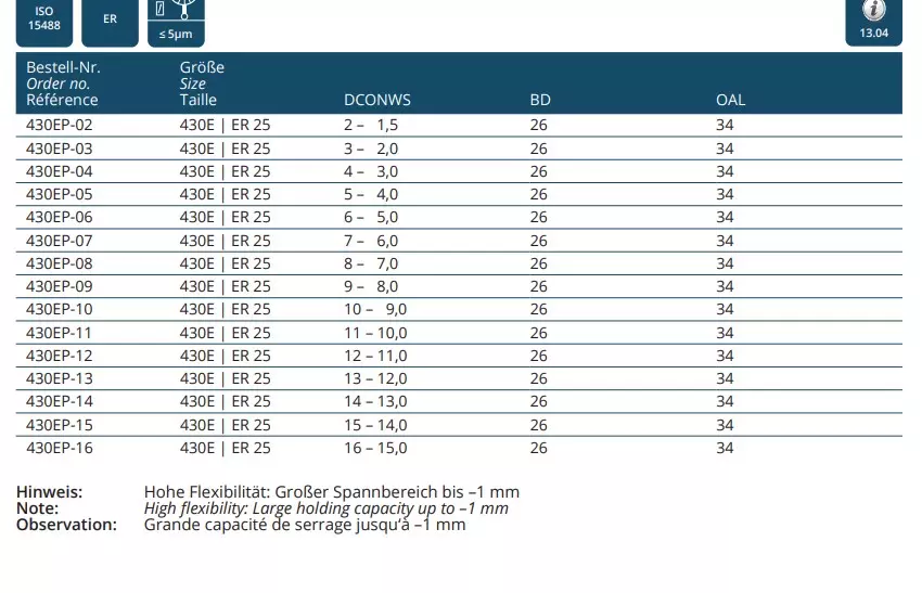 Produktinformationen "Präzisionsspannzangen ISO 15488 B (DIN 6499 B) | ER System"