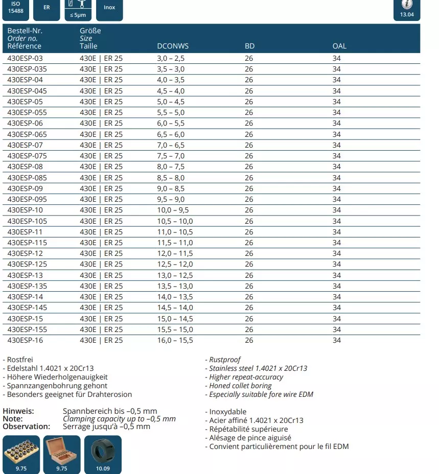 Produktinformationen "Präzisionsspannzangen ISO 15488 B (DIN 6499 B) | ER System - Edelstahl"