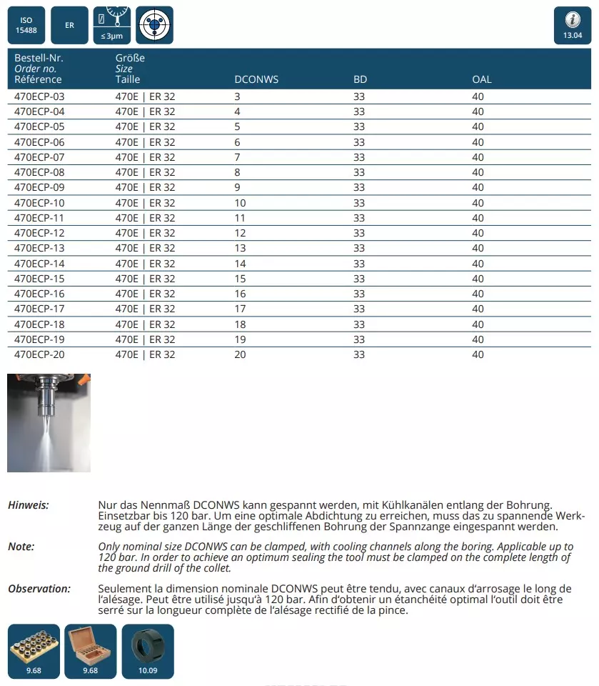 Produktinformationen "Präzisionsspannzangen mit Kühlkanalbohrungen | Rundlauf < 3 µm ISO 15488 B (DIN 6499 B) | ER System"