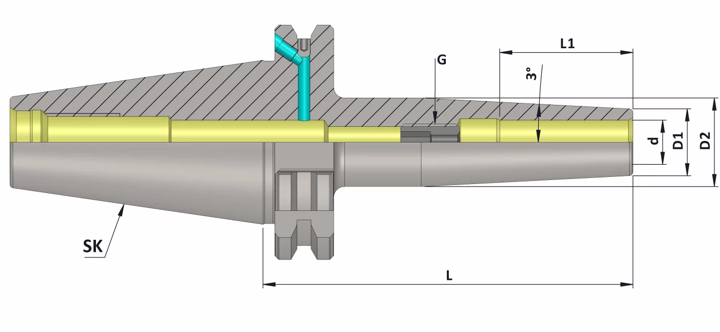 HSK-A 63 (DIN 69893-1) Schrumpffutter schlank (Wuchtgüte 2.5 G 25000 RPM) Maximaler Rundlauffehler des inneren Ø zum äußeren Kegel ist < 0.003 mm Artikelbezeichnung Artikelcode HSK-A d D1 D2 G L L1 HSK-A 63 SFH03 080 SLIM 2.5G 25000 SL SFH63A-03-080 SL LC 63 3 9 14 - 80 13 HSK-A 63 SFH03 120 SLIM 2.5G 25000 SL SFH63A-03-120 SL LC 63 3 9 18 - 120 13 HSK-A 63 SFH03 160 SLIM 2.5G 25000 SL SFH63A-03-160 SL LC 63 3 9 19 - 160 13 HSK-A 63 SFH03 200 SLIM 2.5G 25000SL SFH63A-03-200 SL LC 63 3 9 19 - 200 13 HSK-A 63 SFH04 080 SLIM 2.5G 25000 SL SFH63A-04-080 SL LC 63 4 10 15 - 80 14 HSK-A 63 SFH04 120 SLIM 2.5G 25000 SL SFH63A-04-120 SL LC 63 4 10 19 - 120 14 HSK-A 63 SFH04 160 SLIM 2.5G 25000 SL SFH63A-04-160 SL LC 63 4 10 23 - 160 14 HSK-A 63 SFH04 200 SLIM 2.5G 25000SL SFH63A-04-200 SL LC 63 4 10 23 - 200 14 HSK-A 63 SFH05 080 SLIM 2.5G 25000 SL SFH63A-05-080 SL LC 63 5 11 16 - 80 14 HSK-A 63 SFH05 120 SLIM 2.5G 25000 SL SFH63A-05-120 SL LC 63 5 11 20 - 120 14 HSK-A 63 SFH05 160 SLIM 2.5G 25000 SL SFH63A-05-160 SL LC 63 5 11 24 - 160 14 HSK-A 63 SFH05 200 SLIM 2.5G 25000SL SFH63A-05-200 SL LC 63 5 11 24 - 200 14 HSK-A 63 SFH06 080 SLIM 2.5G 25000 SL SFH63A-06-080 SL LC 63 6 12 17 M5 80 22 HSK-A 63 SFH06 120 SLIM 2.5G 25000 SL SFH63A-06-120 SL LC 63 6 12 21 M5 120 22 HSK-A 63 SFH06 160 SLIM 2.5G 25000 SL SFH63A-06-160 SL LC 63 6 12 25 M5 160 22 HSK-A 63 SFH06 200 SLIM 2.5G 25000SL SFH63A-06-200 SL LC 63 6 12 25 M5 200 22 HSK-A 63 SFH08 080 SLIM 2.5G 25000 SL SFH63A-08-080 SL LC 63 8 14 19 M6 80 26 HSK-A 63 SFH08 120 SLIM 2.5G 25000 SL SFH63A-08-120 SL LC 63 8 14 23 M6 120 26 HSK-A 63 SFH08 160 SLIM 2.5G 25000 SL SFH63A-08-160 SL LC 63 8 14 27 M6 160 26 HSK-A 63 SFH08 200 SLIM 2.5G 25000SL SFH63A-08-200 SL LC 63 8 14 27 M6 200 26 HSK-A 63 SFH10 085 SLIM 2.5G 25000 SL SFH63A-10-085 SL LC 63 10 16 21.5 M8 85 31 HSK-A 63 SFH10 120 SLIM 2.5G 25000 SL SFH63A-10-120 SL LC 63 10 16 25 M8 120 31 HSK-A 63 SFH10 160 SLIM 2.5G 25000 SL SFH63A-10-160 SL LC 63 10 16 29 M8 160 31 HSK-A 63 SFH10 200 SLIM 2.5G 25000 SL SFH63A-10-200 SL LC 63 10 16 29 M8 200 31 HSK-A 63 SFH12 090 SLIM 2.5G 25000 SL SFH63A-12-090 SL LC 63 12 18 24 M10 90 36 HSK-A 63 SFH12 120 SLIM 2.5G 25000 SL SFH63A-12-120 SL LC 63 12 18 27 M10 120 36 HSK-A 63 SFH12 160 SLIM 2.5G 25000 SL SFH63A-12-160 SL LC 63 12 18 31 M10 160 36 HSK-A 63 SFH12 200 SLIM 2.5G 25000SL SFH63A-12-200 SL LC 63 12 18 31 M10 200 36 HSK-A 63 SFH14 090 SLIM 2.5G 25000 SL SFH63A-14-090 SL LC 63 14 20 26 M10 90 36 HSK-A 63 SFH14 120 SLIM 2.5G 25000 SL SFH63A-14-120 SL LC 63 14 20 29 M10 120 36 HSK-A 63 SFH14 160 SLIM 2.5G 25000 SL SFH63A-14-160 SL LC 63 14 20 32 M10 160 36 HSK-A 63 SFH14 200 SLIM 2.5G 25000SL SFH63A-14-200 SL LC 63 14 20 32 M10 200 36 HSK-A 63 SFH16 095 SLIM 2.5G 25000 SL SFH63A-16-095 SL LC 63 16 22 28 M12 95 39 HSK-A 63 SFH16 120 SLIM 2.5G 25000 SL SFH63A-16-120 SL LC 63 16 22 31 M12 120 39 HSK-A 63 SFH16 160 SLIM 2.5G 25000 SL SFH63A-16-160 SL LC 63 16 22 34 M12 160 39 HSK-A 63 SFH16 200 SLIM 2.5G 25000SL SFH63A-16-200 SL LC 63 16 22 34 M12 200 39 HSK-A 63 SFH18 095 SLIM 2.5G 25000 SL SFH63A-18-095 SL LC 63 18 24 30 M12 95 39 HSK-A 63 SFH18 120 SLIM 2.5G 25000 SL SFH63A-18-120 SL LC 63 18 24 33 M12 120 39 HSK-A 63 SFH18 160 SLIM 2.5G 25000 SL SFH63A-18-160 SL LC 63 18 24 36 M12 160 39 HSK-A 63 SFH18 200 SLIM 2.5G 25000SL SFH63A-18-200 SL LC 63 18 24 36 M12 200 39 HSK-A 63 SFH20 100 SLIM 2.5G 25000 SL SFH63A-20-100 SL LC 63 20 26 32 M16 100 41 HSK-A 63 SFH20 120 SLIM 2.5G 25000 SL SFH63A-20-120 SL LC 63 20 26 35 M16 120 41 HSK-A 63 SFH20 160 SLIM 2.5G 25000 SL SFH63A-20-160 SL LC 63 20 26 38 M16 160 41 HSK-A 63 SFH20 200 SLIM 2.5G 25000SL SFH63A-20-200 SL LC 63 20 26 38 M16 200 41