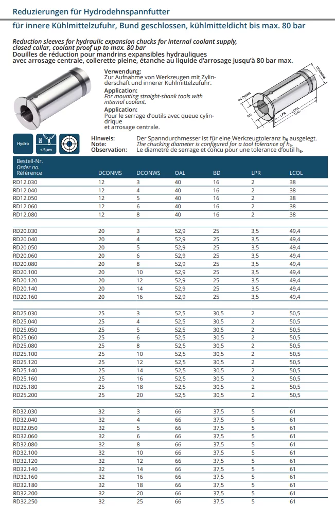 Produktinformationen "Reduzierhülse für Hydrodehnspannfutter für innere Kühlmittelzufuhr, Bund geschlossen"
