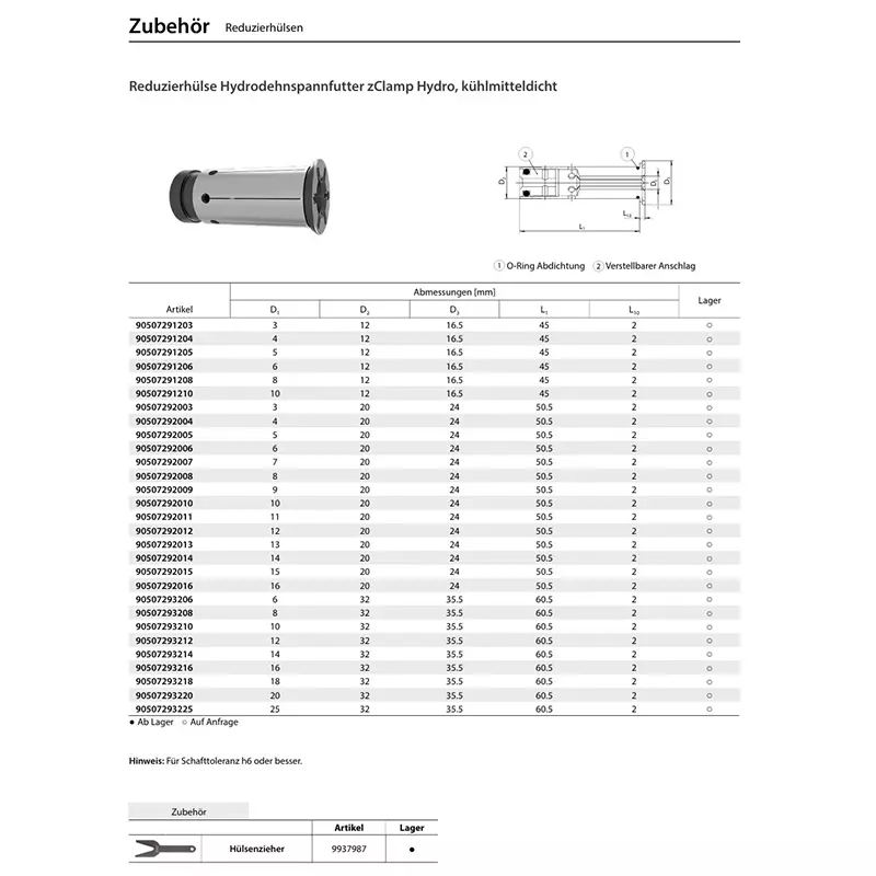 Reduzierhülse Hydrodehnspannfutter zClamp Hydro, kühlmitteldicht