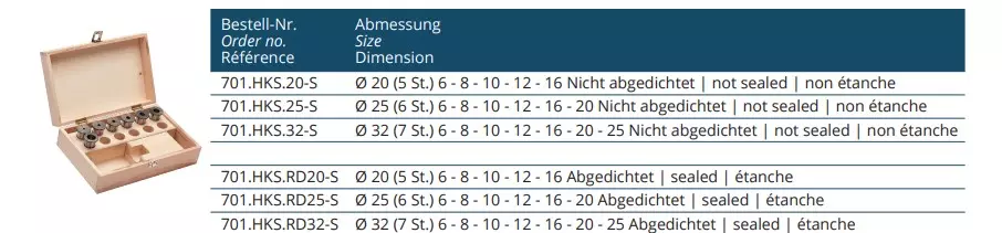 Reduzierungen für HKS Kraftspannfutter 5 teiliger Satz im Holzkasten