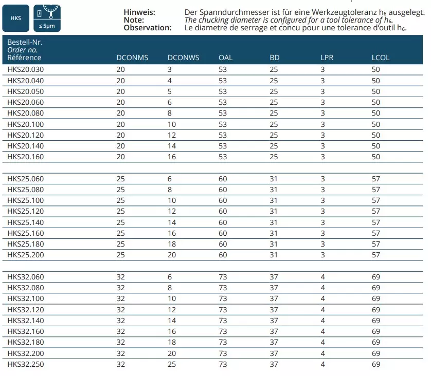 Der Spanndurchmesser ist für eine Werkzeugtoleranz h6 ausgelegt.