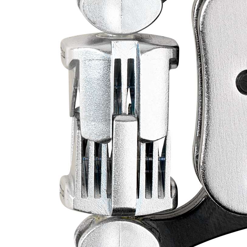 - vereint die Eigenschaften von Zangen mit Front- und Seiteneinführung in einem universellen Werkzeug