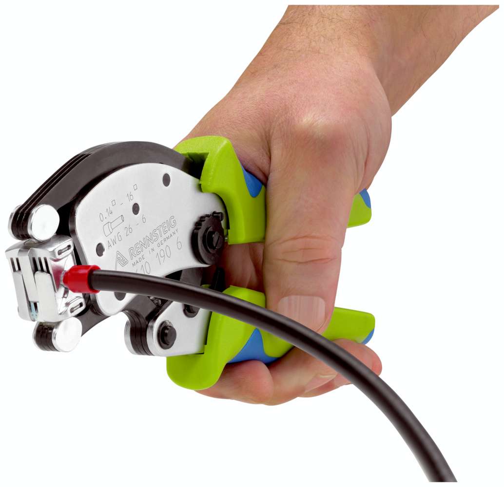- gleichbleibend hohe Crimpqualität durch Zwangsvollendung des Crimpvorganges (entriegelbar)