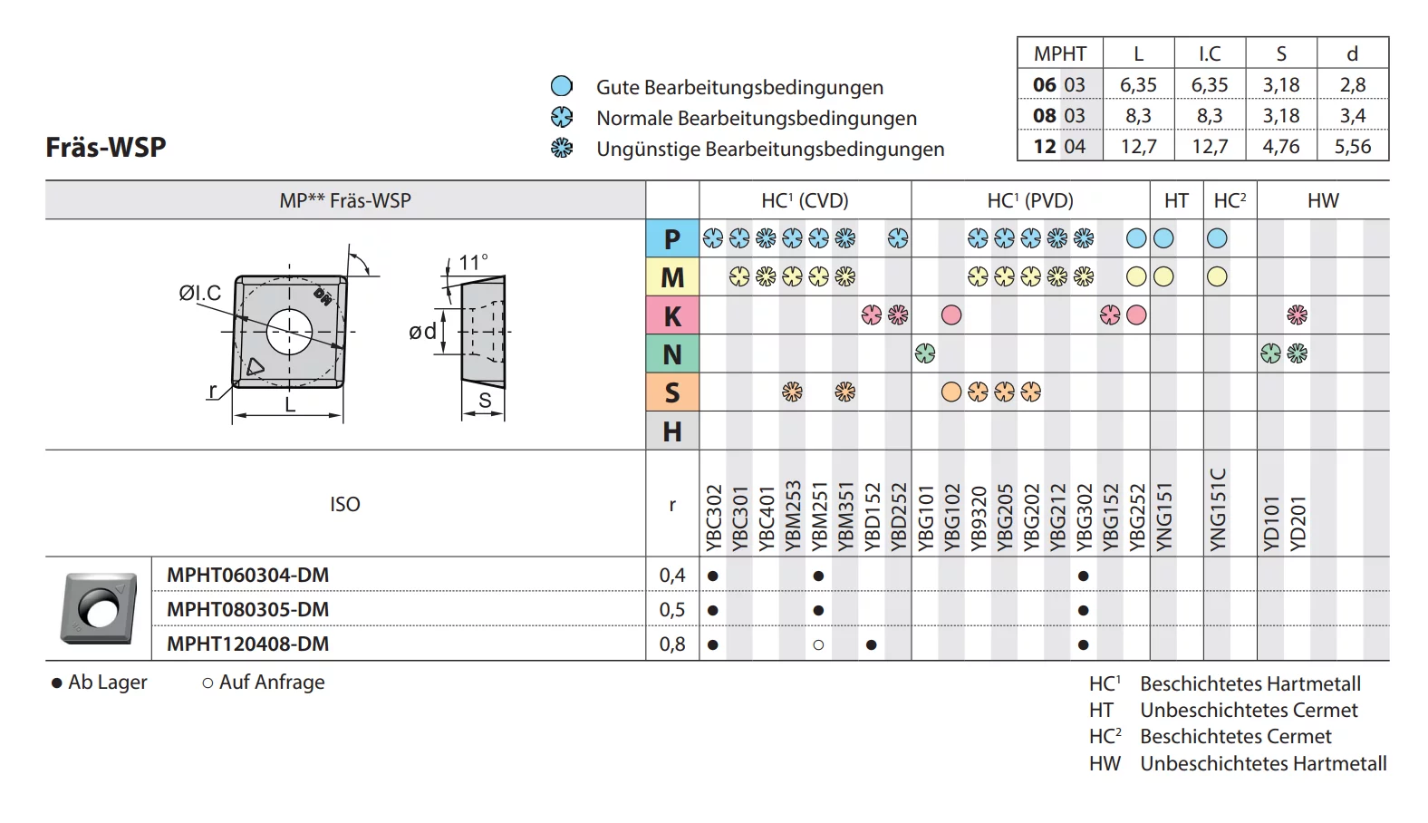 - Für Stahl, nichtrostenden Stahl und Gusseisen