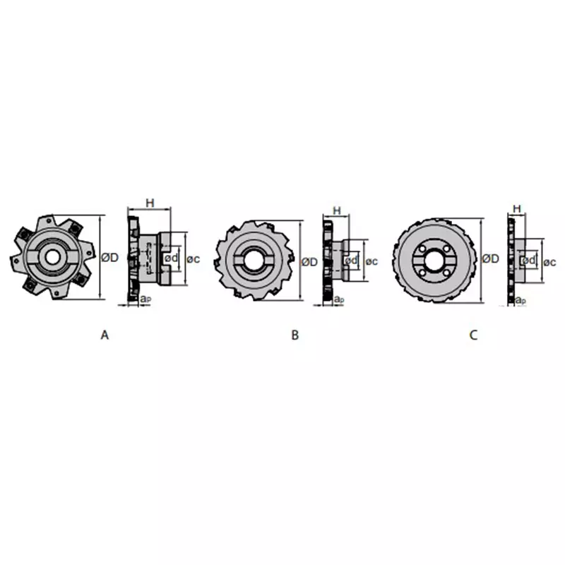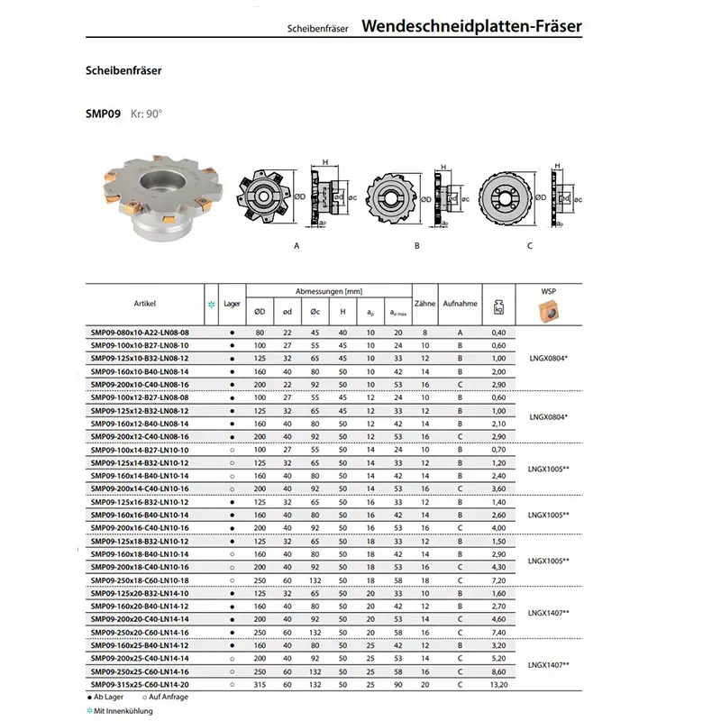 Scheibenfräser SMP09 Kr: 90° Aufnahme A + B + C