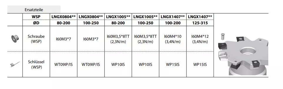 - Kosteneffiziente Bearbeitung durch vierschneidige LNGX Wendeschneidplatte