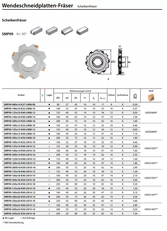 Scheibenfräser SMP09 Kr: 90°
