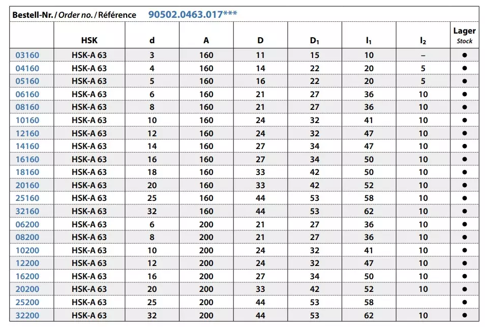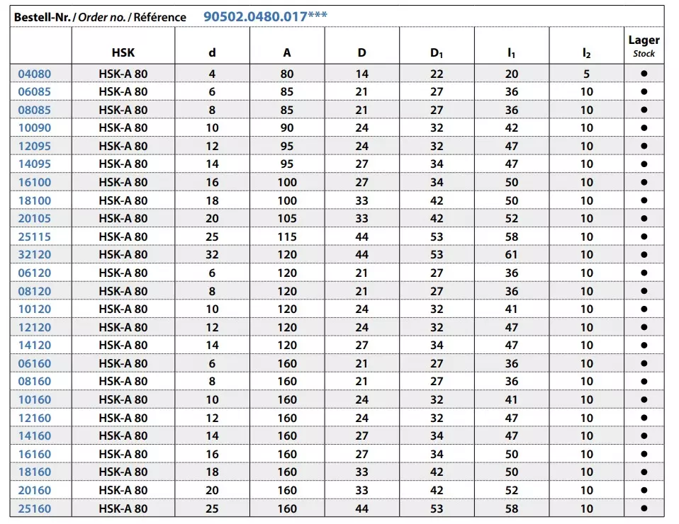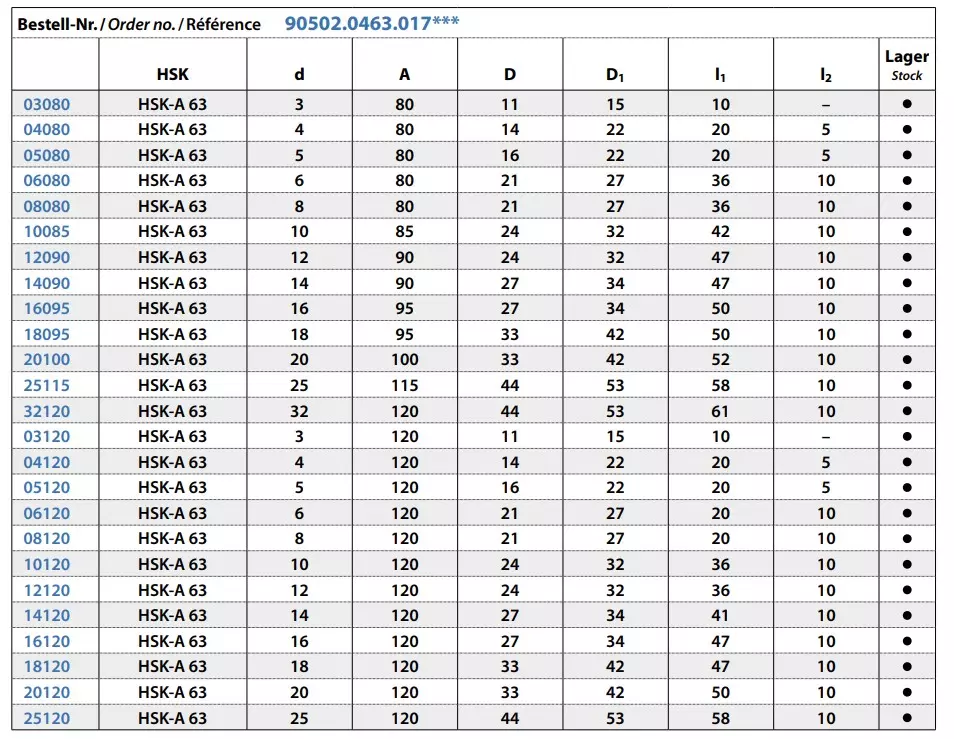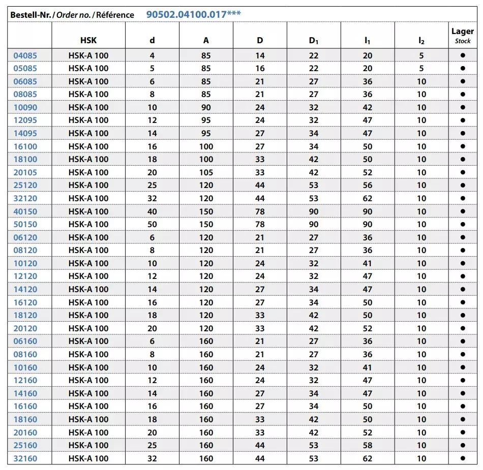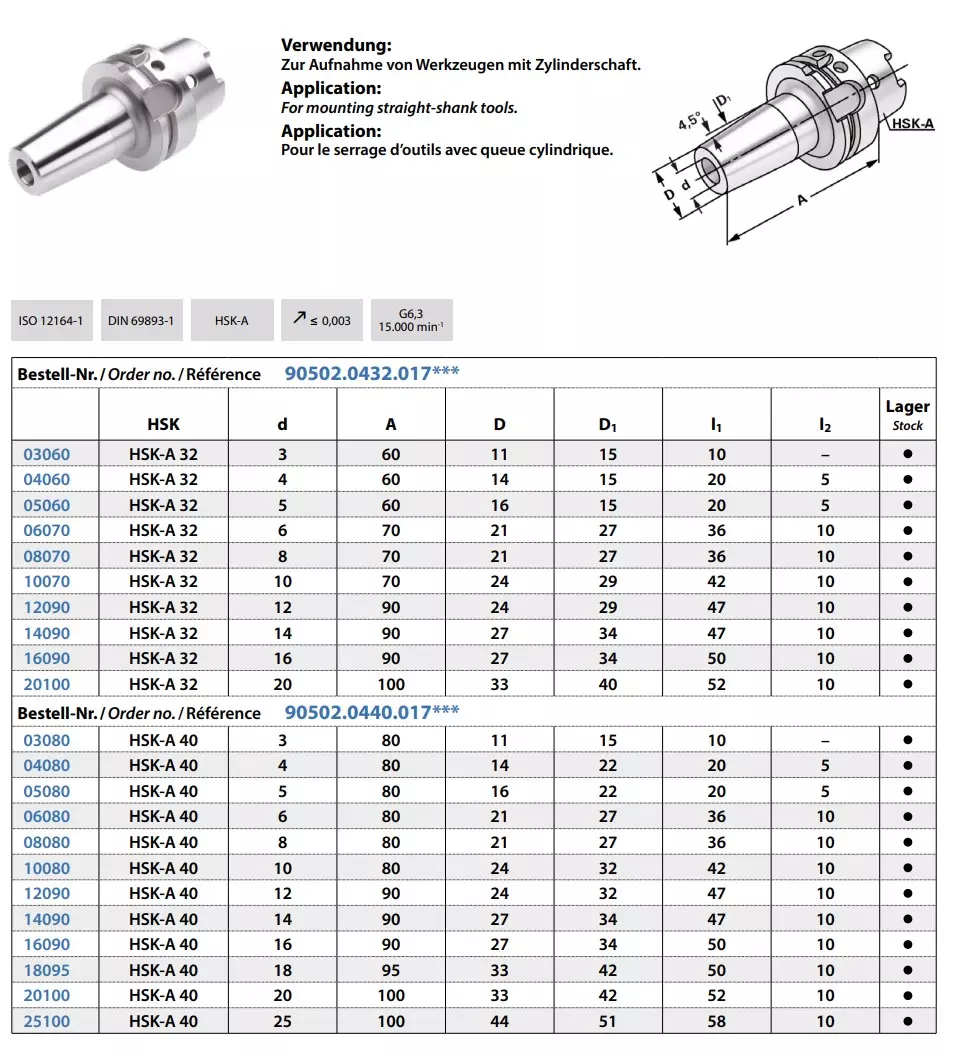 - ISO 12164-1 / DIN 69893-1 / HSK-A / Rundlaufgenauigkeit ≤ 0,003 / G6,3 15.000min