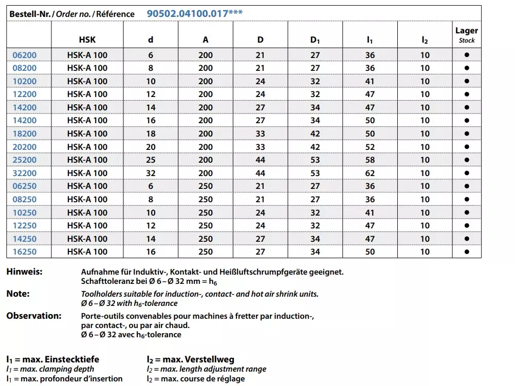 Produktinformationen "Schrumpffutter zum Spannen von HM und HSS Werkzeugschäften HSK-A"