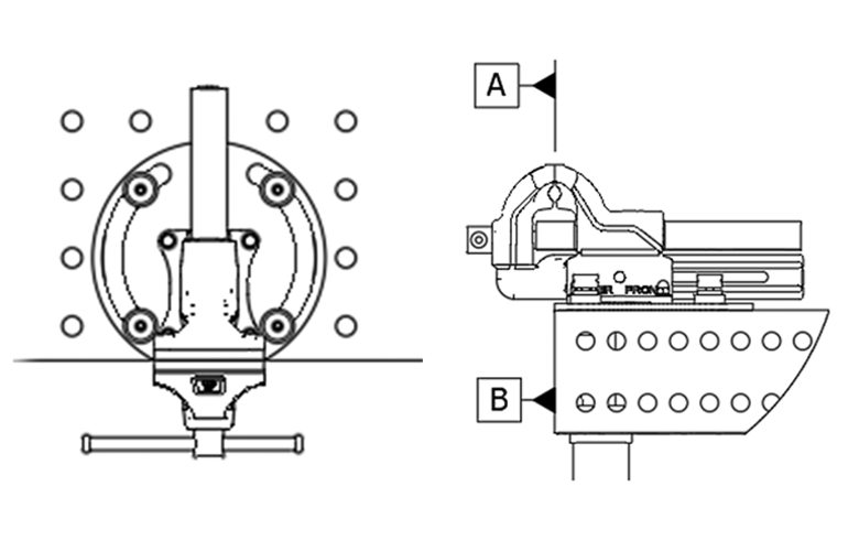 Für drehbare Spannung auf dem Schweißtisch. Mit dem innovativen HEUER Schweißtischadapter kann der bewährte HEUER Schraubstock auf gängigen Schweißtischen eingesetzt werden. Die Bauweise des Tellerradius’ ermöglicht schnelles Drehen und Befestigen durch das bekannte Spannsystem am Schweißtisch. Ein HEUER Schraubstock mit besserer Leitfähigkeit zum Schweißen sowie auswechselbaren Backen ist zusätzlich erhältlich. Man hat so den perfekten Arbeitskollegen am Schweißtisch.