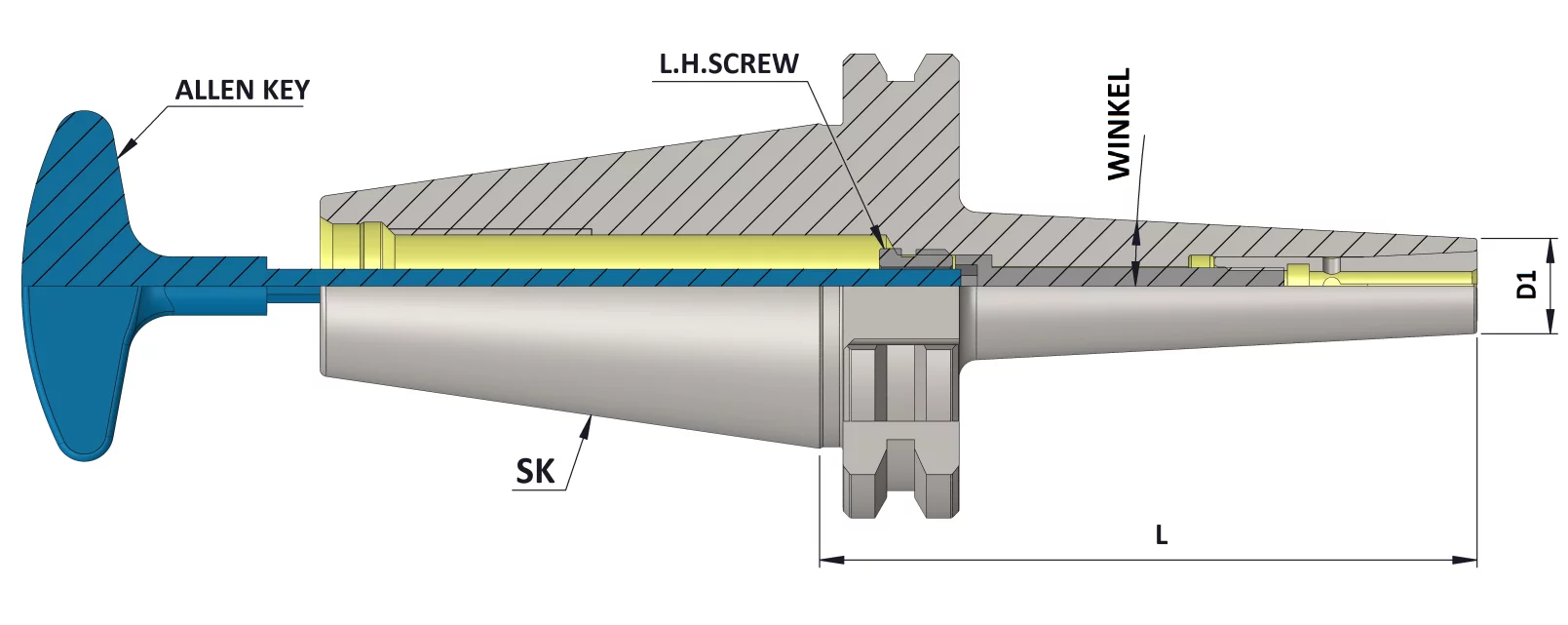 | Artikelbezeichnung | Artikelcode | SK | Spann- Ø | D1 | L | Winkel | Zange | Schraube | Schlüs- sel |