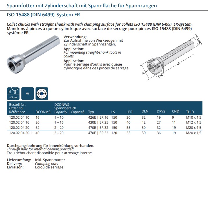 Produktinformationen "Spannfutter mit Zylinderschaft mit Spannfläche für Spannzangen ISO 15488 (DIN 6499) System ER"