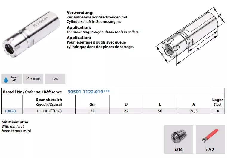 - Form AD / Rundlaufgenauigkeit ≤ 0,003 / CAD