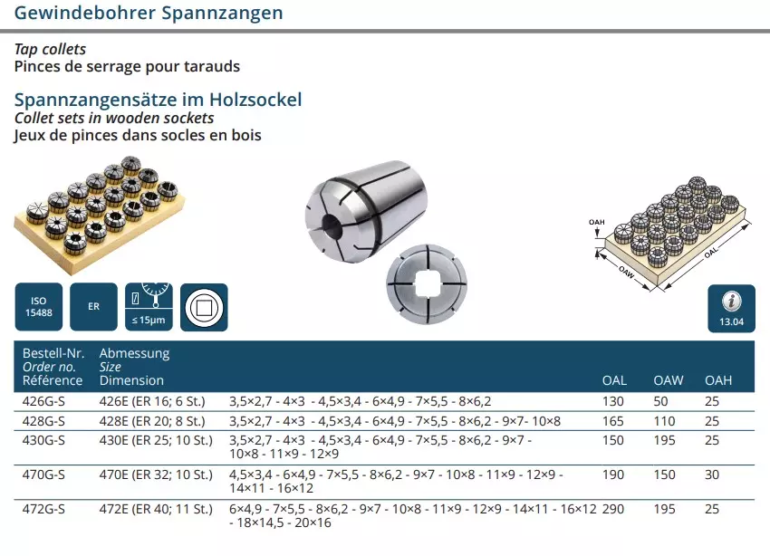 Produktinformationen "Spannzangensätze im Holzsockel"